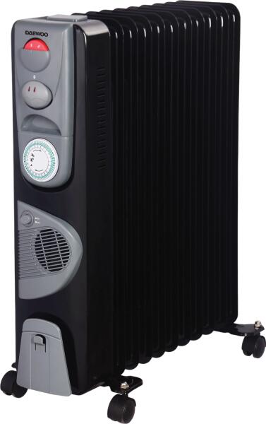 DAEWOO OLAJRADIÁTOR 11 TAGÚ 2500W + 400W DOH-2311MF A Daewoo 11 bordás olajradiátor egy modern, turbóventilátoros fűtőberendezés, amely kiválóan alkalmas a lakótér gyors és hatékony fűtésére. A készülék három hőfokbeállítással, állítható termosztáttal és időzítővel rendelkezik, így a felhasználók igényeinek megfelelően szabályozhatják a hőmérsékletet. 220–240 V ~ 50/60 Hz, 2500 W + 400 W.   A beépített hőbiztosíték, a biztonsági billenőkapcsoló és a túlmelegedés elleni védelem biztosítja a biztonságos használatot, míg a csendes működés és a sima görgők a kényelmes és zavartalan használatot teszik lehetővé. A beépített fogantyú és a kábeltártó funkciók pedig a hordozhatóságot és a praktikus tárolást szolgálják. Sima és stabil görgők a könnyű mozgathatóság érdekében. Jelzőfénnyel ellátott be-/kikapcsológomb és kábeltártó található a terméken. Felborulás elleni védelem:IgenBefűthető légtér:70 m3Gyártói termékkód:DOH-2311MFTermosztát os hőfokszabályzás:IgenTúlmelege dés elleni védelem:IgenKellékszavatosság: 2 évKötelező jótállás:2 évTermék magassága:63 cmTermék szélessége:48.5 cmTermék mélysége:23 cm