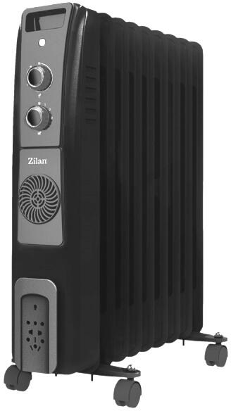 Zilan ZLN1956 elektromos olajfűtés 9 lamellával, 2400 W. Ideális 20–25 m2-es helyiségekbe. Hőmérsékletszabályozás termosztáttal, 3 teljesítménymód: 800 W /1200 W/2000 W + turbóventilátor 400 W. Túlmelegedés elleni védelem.